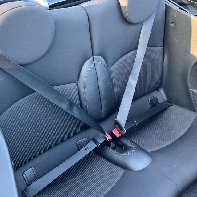 Upgrades – and there are a good few of these as Half Leather is rare in a MINI One but it also has, PEPPER PACK, Soft Leather in Carbon Black, Full Bluetooth Tel. Prep. with USB Audio, L.Alloy Wheels 6-Star Twin Spoke, Alloy Wheels-6.5Jx16in 6-Star Twin Sp. 195/55 R16, Leather Steering Wheel, Park Distance Control (Parking Sensors), Automatic Air-Conditioning, Alarm System, Heated Windscreen Washer Nozzles, Chrome Line Exterior, Additional Decor Rings, Interior World Carbon Black, Colour Line Carbon Black, Height Adjustment Front Passenger Seat & to Driver’s Seat too, Sports Seats for Front Driver & Passenger, Passenger Airbag Deactivation for the Front, Storage Compartment Pack, Fog Lights, Automatic Air Conditioning, On Board Computer, Lights Package, Radio MINI Boost CD, DAB Digital Radio, Second Radio Remote Control Key, Vin, Visible From Outside, Dynamic Stability Control (DSC), Rear Fog Lamp, Basic Bluetooth Function with USB Audio, Convertible Pack, Solid Paint, Locking Wheel Bolts, Run Flat Tyres, Sports Seats F Driver/Front Passenger, Storage Compartment Package, Car Jack, Anti-Theft System, 6 months warranty, 12 months MOT, Full service history, Blue Part leather interior